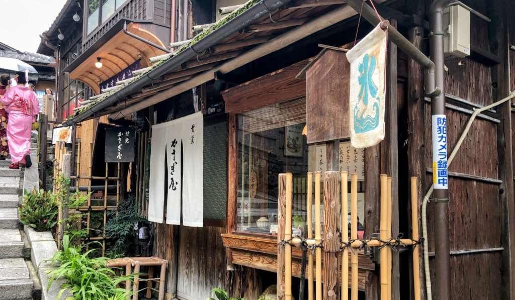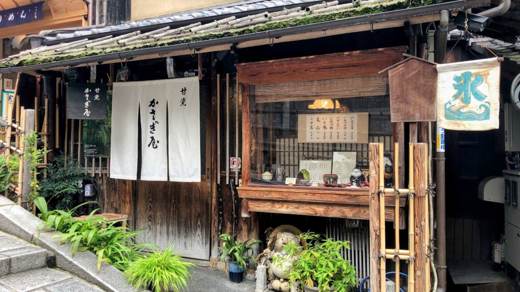 かさぎ屋は大正3年創業で、清水寺に通じる二寧坂にある甘味処。創業時から変わらないであろう、風情ある外観が素敵なお店です。